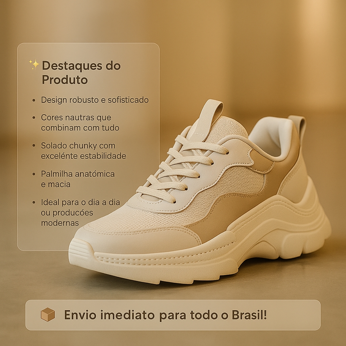 Real product photos, exclusive to our store! Avoid inconvenience by measuring the insole of your sneakers and comparing it with the size chart below: NOTE THE SIZE CHART: 34 23 cm 35 23 cm 36 24.5 cm 37 24.5 cm 38 26.5 cm 39 26.5 cm Package contents 01 pair of sneakers 01 box with tissue paper Ready-to-ship products; Fast and secure shipping; Exceptional customer service via chat